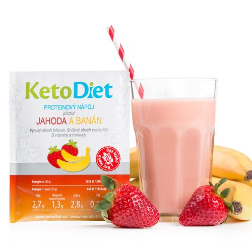 Produkt: KetoDiet Proteinový nápoj příchuť jahoda a banán (7 porcí) - 100% česká keto dieta